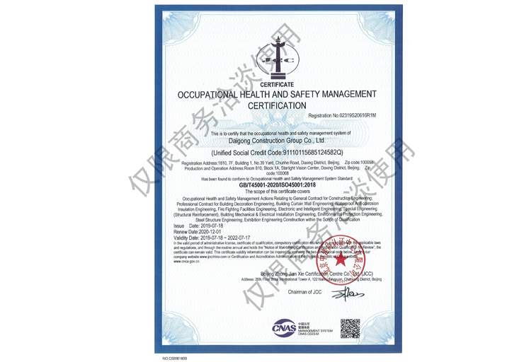 戴工建設集團有限公司,創建于2009年,注冊資本9888萬元人民幣。公司位于北京市大興區。具有建委頒發的建筑裝飾裝修專業壹級,防水保溫工程專業壹級,建筑幕墻專業貳級,消防設施專業貳級,電子與智能化專業貳級,特種工程(結構補強)專業不分等級,建筑機電安裝專業貳級,環保工程專業貳級,鋼結構專業貳級,建筑工程總承包貳級,建筑裝飾工程設計專項甲級,展覽陳列工程設計與施工壹級,展覽展示工程壹級...更多>>